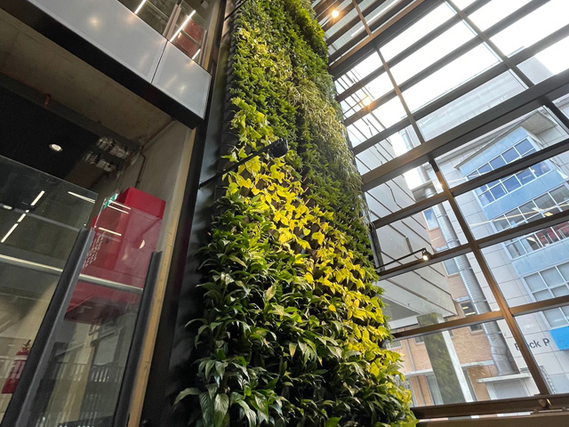 Now with 1,000 plants installed in the vertical garden, the space now has a refreshed look. Absorbing 50 percent of sunlight helping to create a more stable and pleasant climate by reducing the air conditioning consumption since 33 percent less is required, which translates into significant electricity savings, vertical gardens not only uplift the mood the space, it also helps with saving energy in sustainable, environmentally friendly alternatives.