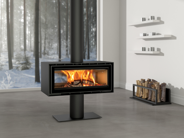 Experience the epitome of comfort and style. With its sleek black steel body and captivating glass doors, this fireplace is a testament to exquisite craftsmanship and offers a truly unique and immersive warmth that envelops you in a cosy ambience. Perched gracefully on a pedestal base, the Linea 100 Duo P boasts an elevated and unrivalled view of the fire that will captivate your senses.