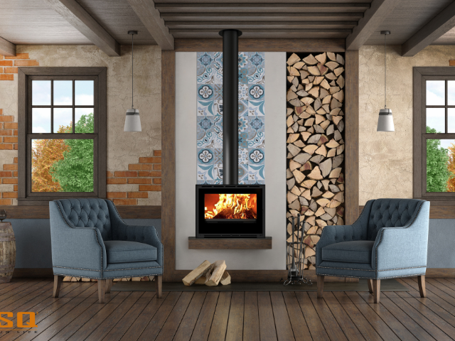 To enhance safety and efficiency and reduce your clearances BOSQ introduces the highly effective Heat Shield for the Aere 70S. This optional shield [sold separately] ensures that the heat is distributed effectively while protecting your surrounding walls. Now you can enjoy the cosy ambience of a roaring fire without worrying about any unwanted damage.