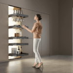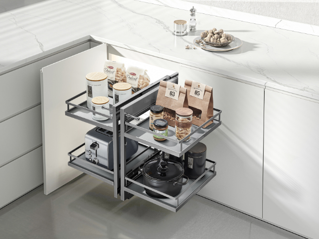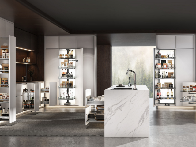Higold’s kitchen cabinet storage systems are expertly designed to marry architectural aesthetics with peak functionality. The award-winning systems fit seamlessly into any modern kitchen, ensuring cabinet space is maximised and stored items are easily accessed. Options include overhead pull-down shelves, tall pantry pull-out and open-out units, drawer systems and advanced blind corner pull-out systems.