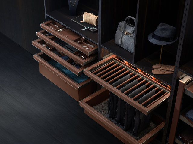 Being storage-savvy is just as crucial in the bedroom, where a streamlined aesthetic is now a statement of high-end design. For those looking to bring luxury and craftsmanship to their wardrobes, Higold’s modular storage inserts ensures sleek and effortless organisation of clothes and accessories. Finished in premium stitched PU vegan leather and available in three styles and colours, these inserts ensure everything is convenient to access and alluringly displayed, with everything in the right place.