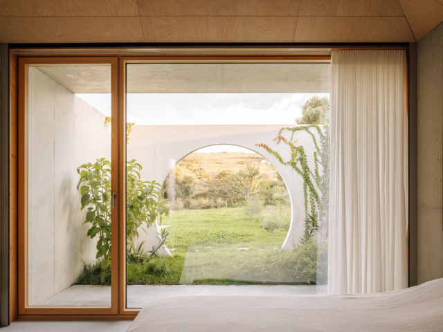 This Portuguese home has been built within the protected are of Arrábida Natural Park. Wanting to work with the natural surrounds, the materials used throughout the build ensure the house will age naturally and with minimal effect on its environment. The design uses the beautiful views as they key focal point of infrastructure, allowing the landscape to enjoyed no matter where you are in the space.