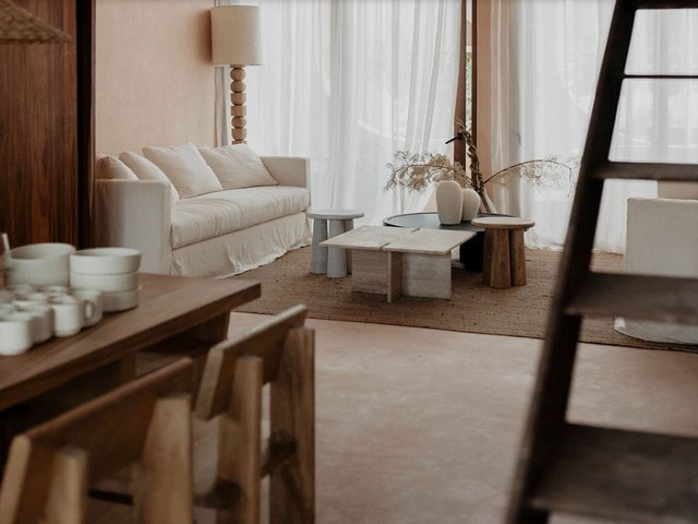 The entire complex is finished in chukum, a limestone based stucco traditional to the Yucatán Peninsula, applied over reinforced concrete. Valued for its humidity resistance, thermal performance and low maintenance, the soft pink finish is paired internally with tropical timbers and clay elements. Generous openings enable cross ventilation, reducing reliance on mechanical cooling and reinforcing the project’s bioclimatic approach to living in a tropical environment.
