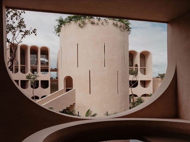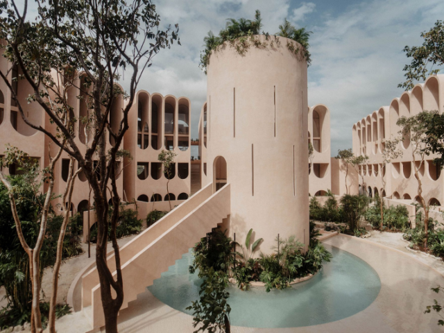 Mexican studio V Taller has completed a residential complex in Tulum that combines sculptural form, dense living and environmental restraint, wrapped in a distinctive pink stucco finish.