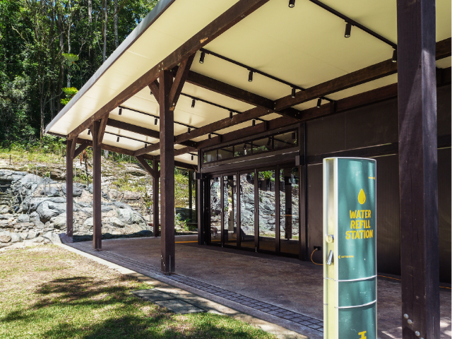 The park’s main building features substantial timber beams finished in CUTEK® Colourtone Black Ash, a deep charcoal tone that pays homage to the bushfires that have shaped Australia’s landscape. Referencing the blackened trunks left in fire’s wake, the finish acknowledges both fragility and resilience, visually anchoring the structure while the surrounding living forest stands as a symbol of renewal.