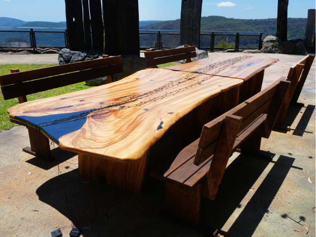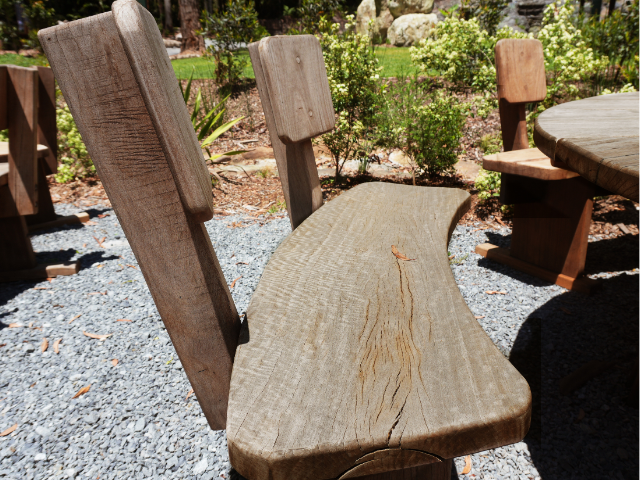 Trees removed from the site were milled and transformed into benches, communal tables and informal seating throughout the grounds. Rough edges were retained where possible, preserving the character and story of each piece. Visitors now sit on timber that once formed part of the canopy above them.