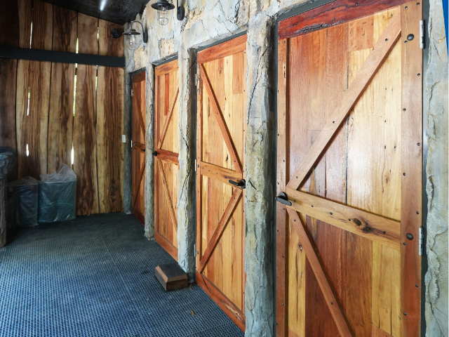 During development, sections of the site were found to be overly dense. For safety and forest health, selective clearing was required. Rather than removing the timber and moving on, the team chose to repurpose it.