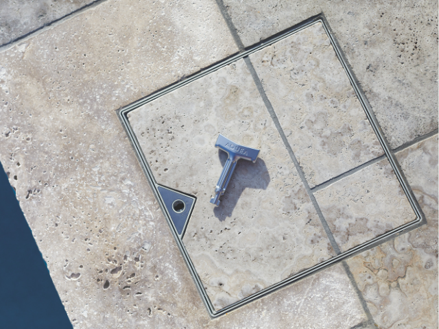 V-LOCK’s unique locking mechanism provides secure, concealed access to skimmers and other deck equipment, meeting Australian Safety Standard AS1926.3 across all inlay materials and thicknesses. Its straightforward, on-site installation and broad model range integrate effortlessly with tile, stone, timber, paver and poured concrete finishes. The result is a flush‑fit, seamless lid that blends into the surrounding deck for a refined, premium look on any pool.