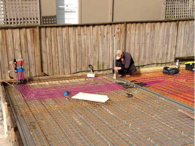 A complete kit for installing a hydronic underfloor heating system, custom-designed for the specific project layout. Includes all components, ...