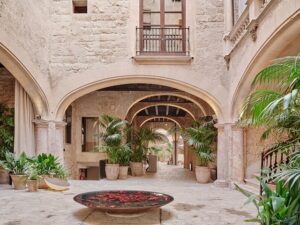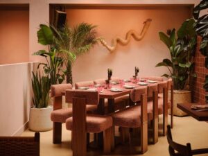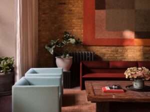 Sun-bleached pinks, sandy-beiges and gold décor details appear inside this hotel, which Richards & Spence has designed to ...