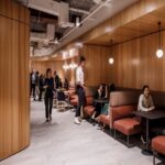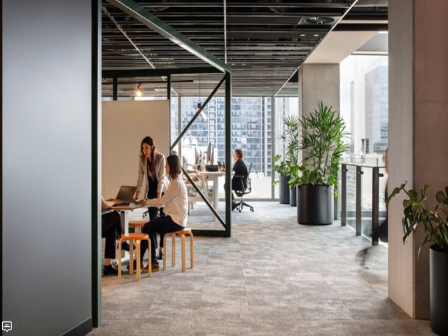 In contrast, NAB 2CS occupies 12 levels and 29,000 square metres across the heritage listed Shell House and a new commercial tower. Framed views over Wynyard Park strengthen the project’s established character, reinforcing its connection to the CBD’s business fabric. The first four levels are publicly accessible and include a micro branch and café. A sculptural entry ribbon sets the tone for the circulation journey and leads visitors to an elevated concierge space. The upper floors offer a generous mix of collaboration settings, outdoor terraces, an amphitheatre and a substantial dealing floor, all planned to support NAB’s evolving workplace strategy.