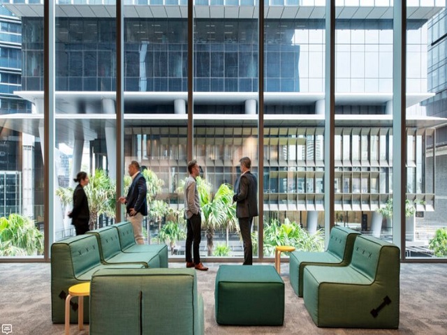 Together, the two tenancies form a cohesive urban workplace network that bridges Sydney’s established and emerging centres, with the red staircase acting as a visual and conceptual anchor for the bank’s citywide presence.