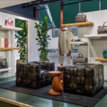 A sculptural centrepiece known as La Tavola sits at the heart of the space. Inspired by the communal workbenches used by the brand’s leather artisans, the smooth wooden table serves as both display and storytelling device. It showcases jewellery, small leather goods and fragrance, while drawers beneath hold the materials and tools used to create the Intrecciato weave, offering visitors a glimpse into the making process.
