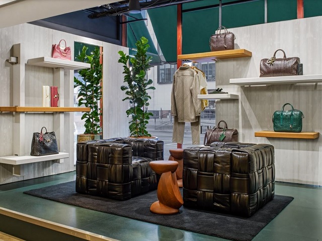 Designed by Bottega Veneta’s in-house team, the installation celebrates 50 years of the label’s iconic Intrecciato weave through a tactile and architectural interior.