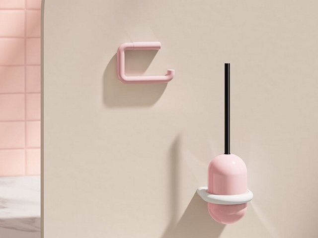 The collection is as versatile as it is playful. Products can be installed in boutique hotels, private residences, or healthcare environments, offering designers and homeowners the freedom to mix monochrome black-and-white with subtle pink accents or go all-in on Barbie pink. Signature pieces, such as the pale pink toilet roll holder paired with the three-tone toilet brush set in pink, black, and white, demonstrate how colour, form, and function can work in harmony.