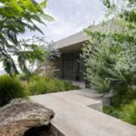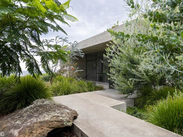 Rather than presenting as a conventional dwelling, the project is planned so that arrival at the house is experienced as arrival at a garden, reflecting the way natural headlands frame the beaches they overlook.