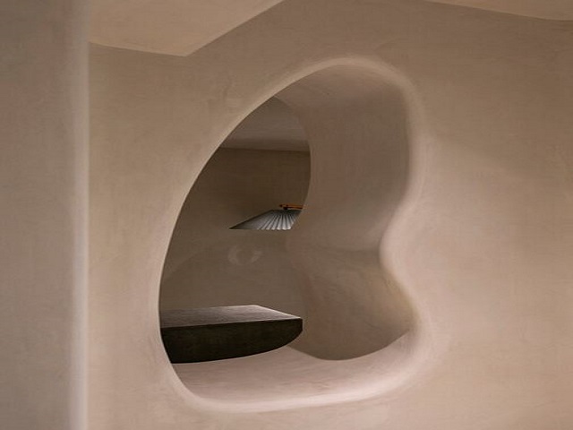 Custom elements developed from the client’s sketches add another layer of identity. A maze-like corridor gallery and an irregularly shaped window within the central space establish moments of discovery. As oval motifs were introduced, the design language evolved to incorporate softened geometries, with curved wall intersections replacing sharper junctions to maintain visual continuity.