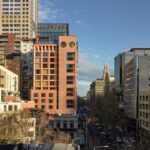 Architecturally, the sixteen-level building draws inspiration from Melbourne’s urban identity and its specific site on Russell Street. The design references twentieth-century massing and detailing, articulated through modelled tinted concrete and brick, with operable shutters to every guest room. This expression situates Melbourne Place among a distinguished lineage of neighbouring landmarks such as the T&G building, Cavendish House, and Hero, the former Russell Street telephone exchange.