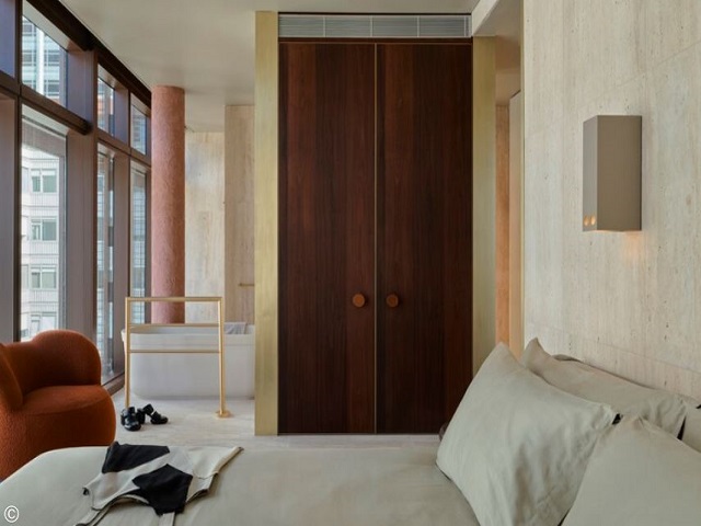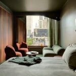 Inside, the palette is tonal and natural, with bricks made in collaboration with Kraus Bricks in Stawell, tinted concrete, and red metal highlights. West Australian jarrah, custom terrazzo, brass, and corten steel provide warmth and texture, while colour is used with both intensity and playfulness. Many fittings, furnishings, and artworks have been sourced from local designers and makers, further grounding the hotel in Melbourne’s cultural landscape. The effect is fresh yet familiar, a true reflection of the city it serves.