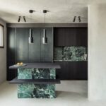 A reflective pond is placed underneath the floating stair, to connect the ground floor to the top floor. The linear skylight on top of the stair ceiling area also becomes one of the important elements in creating the inside-outside concept. The third mass is the top floor. The top floor is mainly used for the kids’ bedroom and study area. The big void in the middle connects the ground floor to the first floor, it also allows cross ventilation and natural light to burst in, creating a bright and fluid setting in the house. The floor to ceiling high square shelving is becoming one of the interior highlight, as a display fixture and also as a shade to the big balcony on the back of the top floor.