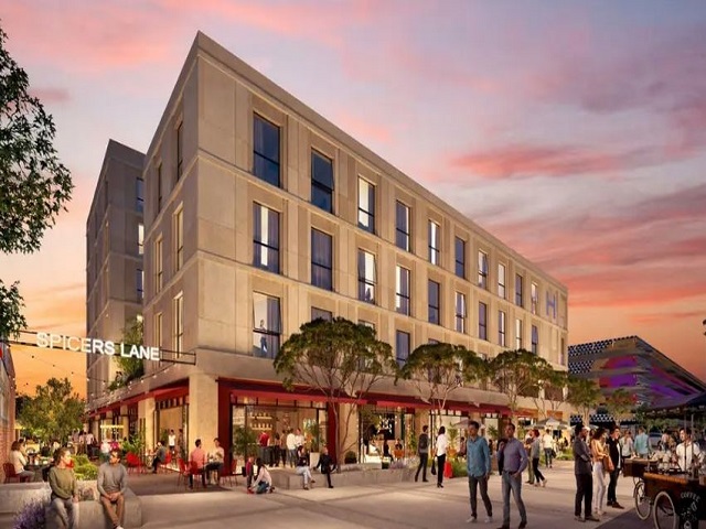 Designed by Woods Bagot, the project also introduces Spicers Lane, a new pedestrian connection intended to activate the ground plane and enhance permeability through the site.