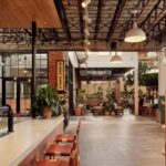 Located in the city’s historic Pearl District, the site was once home to the Samuels Glass building, an Art Deco factory designed by Bartlett Cocke in 1948. The design team treated the 53,979-square-foot structure as a canvas, preserving its patina and industrial character while adapting it to house a contemporary marketplace. Today, Pullman Market features a specialty grocer showcasing more than 150 Texas-based suppliers, five quick-service eateries and four full-service restaurants.