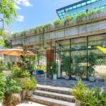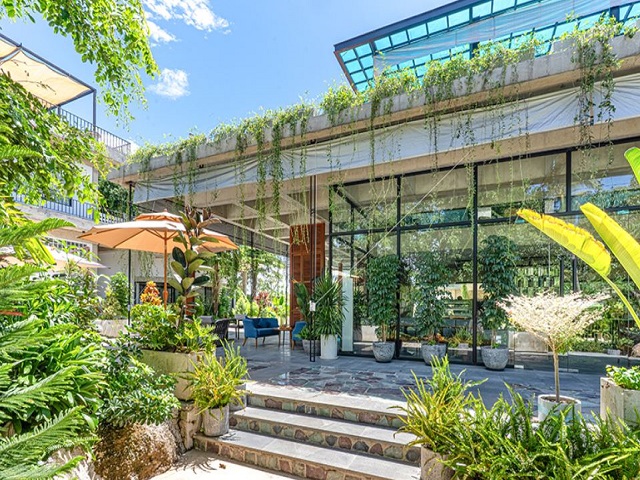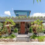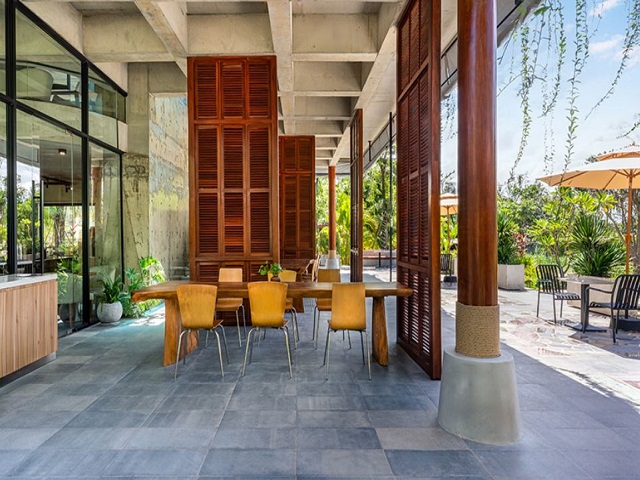 The original building consisted of exposed slabs, beams, and columns intended for utilitarian use but left incomplete. Rather than demolish the concrete skeleton, Khoan + Partners retained its structural clarity and overlaid it with timber, greenery, and other natural materials to bring warmth and human scale. Operable timber louvers, soffits, and cladding filter sunlight and soften the starkness of the concrete, while cascading vines and climbing plants weave through the structure, dissolving boundaries between interior and exterior.