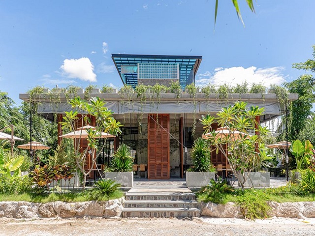 Khoan + Partners has reimagined an unfinished concrete structure in Cambodia as Phum Sambo Café & Eatery, a project the studio calls A Living Frame.