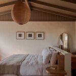 Guest rooms are airy, with lofted ceilings and no televisions to preserve the quiet of the setting. Western-facing rooms open directly onto the desert via private patios, while others feature enclosed courtyards with outdoor showers, built-in banquettes and gas fireplaces. “It quiets the noise and makes you listen,” she continued. “I wanted Wren to reflect that stillness, a space where architecture and landscape exist in quiet conversation, where every material and every detail is chosen with care and intention”, explains Pell.