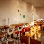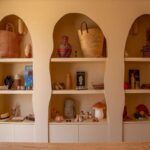 This naturalistic theme continues in the restaurant, Teos, where curved walls and uneven entrances evoke a sense of grotto-like shelter. The interiors incorporate a range of natural materials, from local stone and soil to Australian and red woods, wool, and cotton, ensuring a tactile and grounded experience.