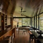 Internally, the home is defined by a rich application of spotted gum timber, which wraps walls and ceilings in the primary living spaces. Sourced in response to the surrounding forests, the timber creates a warm, immersive environment that reinforces a strong connection to place. Mills described the approach as both considered and expressive, balancing restraint with moments of material play.