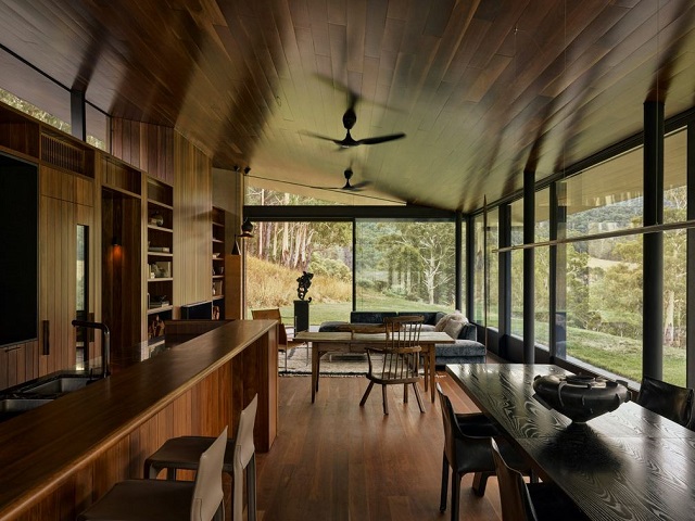 Located in the Howqua Valley, the home was designed for the family of the studio’s founder, Rob Mills, on land originally purchased by his father, a former employee of the Howqua Valley Forest Commission.