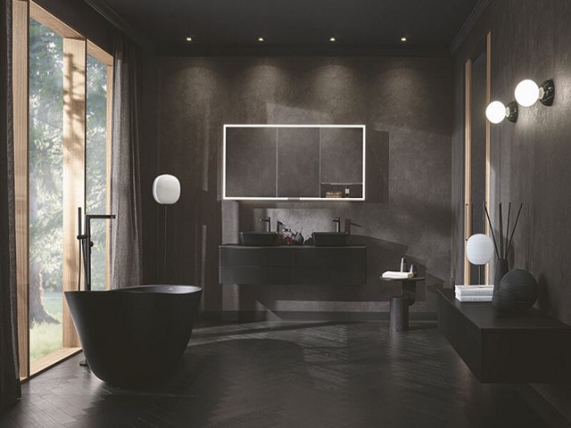 Completing the vision, Villeroy & Boch has introduced a range of Finion furniture in Pure Black. Modular vanity units, tall and side cabinets, shelving and mirrors are all designed with clean lines and a handleless profile. Integrated atmospheric lighting creates further depth, while the tonal consistency ensures each piece blends seamlessly into the broader scheme. Together, they form a bathroom that is both contemporary and timeless, where the absence of colour allows design language to take centre stage.