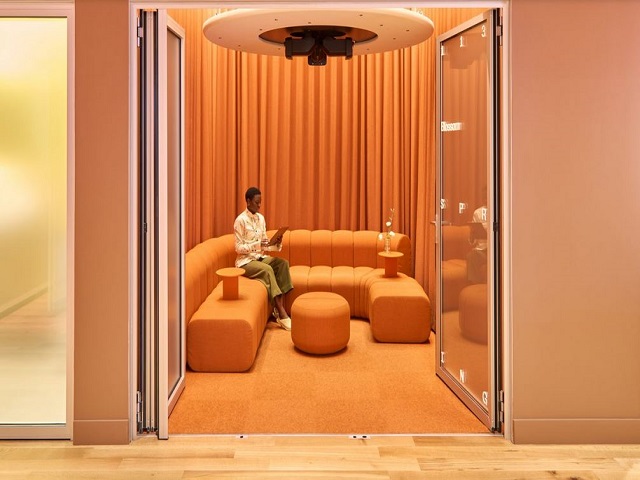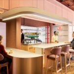Digital content and wayfinding graphics, developed in collaboration with design studios Modem and Field.io, are projected onto fabric partitions throughout the interior. These projections respond in real time to factors such as guest movement, weather conditions and circadian rhythms via an operating system for spatial intelligence known as SpringOS.