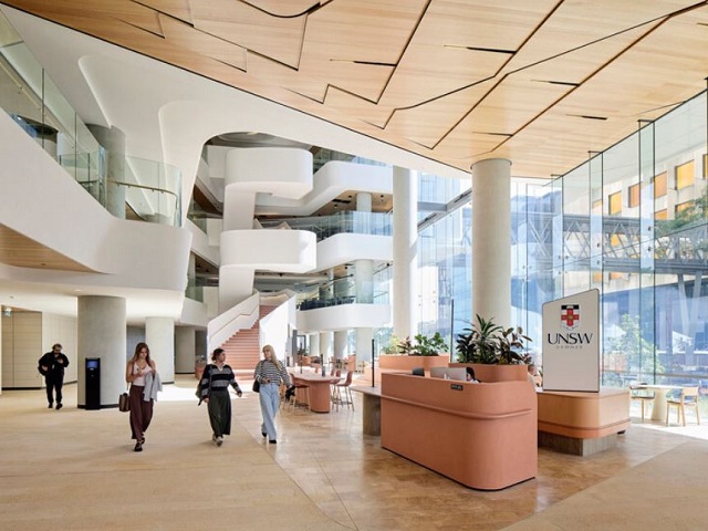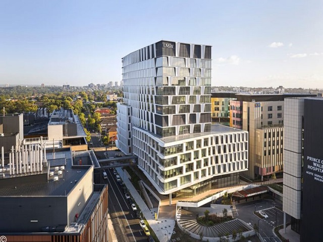 Developed for University of New South Wales, the 14-storey building bridges the university’s Kensington campus with neighbouring hospitals and research institutions.
