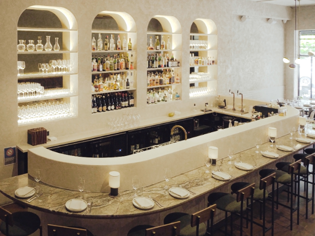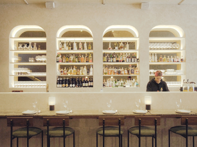 Upon entering, the eye is immediately drawn to the bar at the heart of the restaurant, elegantly wrapped in Cello Marble. This feature anchors the space, inviting guests to enjoy contemporary European cuisine and an extensive wine list while connecting with others in a lively, social setting. The pairing of microcement with the Marble creates a natural flow through the space, while the stone’s dark veining and organic patterns add texture and visual interest, reminiscent of natural landscapes.