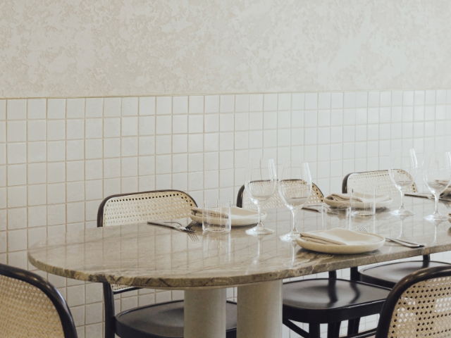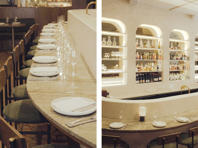 The design intent was to create a space that feels lighter and more uplifting, one that radiates an inviting energy while maintaining intimacy and comfort. Selecting the right stone played a central role in achieving this balance. Cello Marble, with its natural variation, striking veining, and depth of colour, brings personality and character to the interior. Guests interact directly with the stone as they dine, making it not only a design statement but also a tactile experience and an engaging conversation piece.